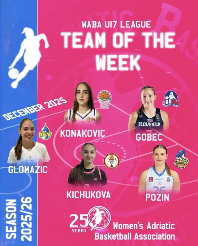 Zahvaljujući ukupnom učinku od 43 poena, 22 skoka i 12 asistencija u dvije utakmice, Mia Glomazić je zasluženo uvrštena u WABA U17 Team of the Week, čime je dodatno potvrđena sjajna forma mlade igračice i kontinuitet dobrih igara FSV-a u ovogodišnjem natjecanju.
